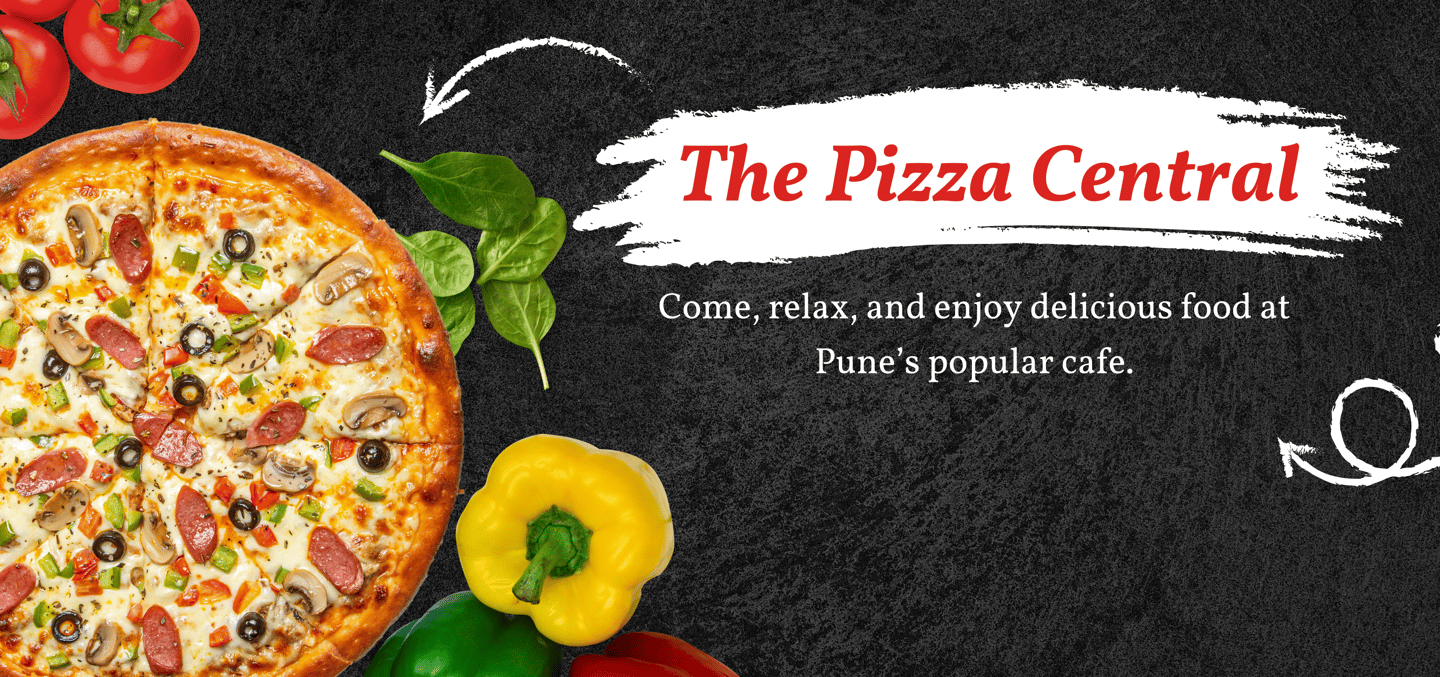 Welcome to The Pizza Central, your favourite cafe in Pune, where great taste meets comfort. We specialize in serving freshly baked pizzas, crispy fries, juicy burgers, creamy cold coffee, cheesy garlic bread and delightful ice creams – all crafted to satisfy your cravings.